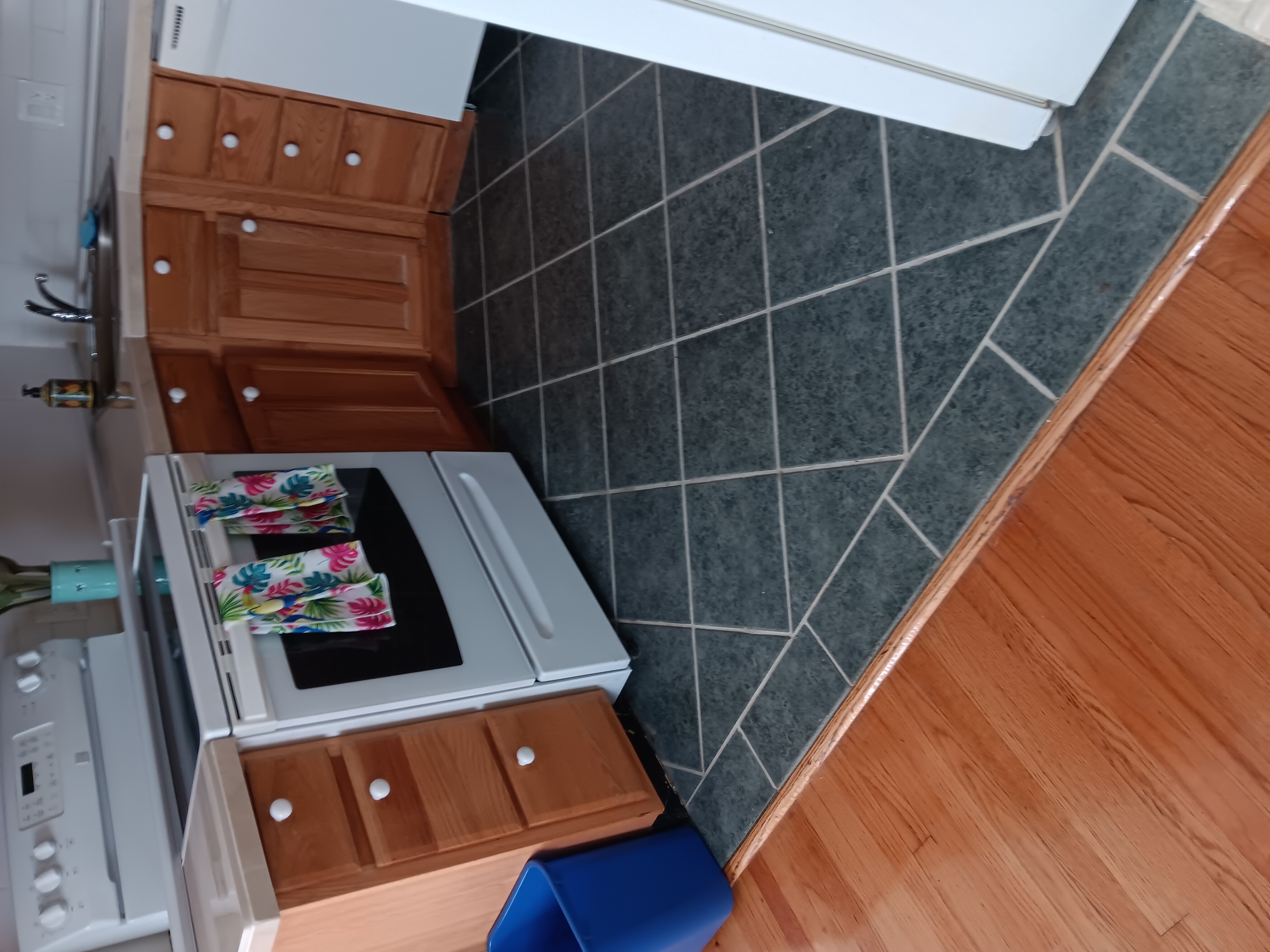 varnished oak floors and an updated kitchen. It is fully furnished with kitchen dishes and cooking utensils,